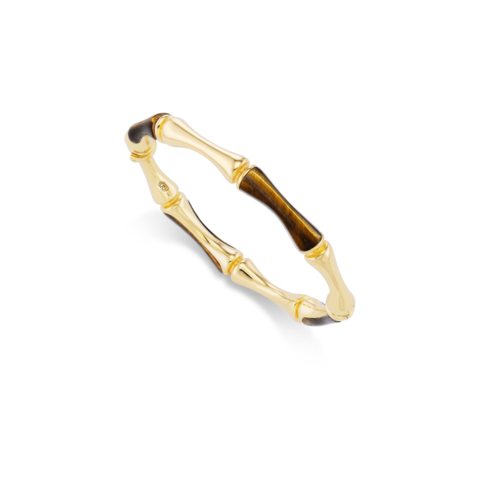 Gold Bamboo Bracelet with Carved Tigers Eye