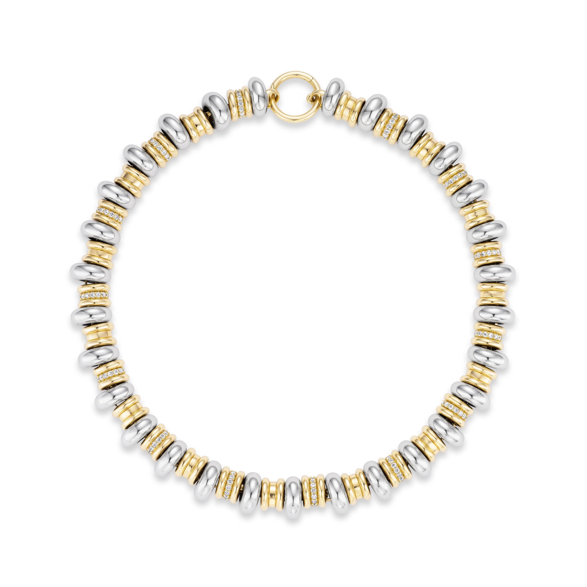 Platinum and Gold Rondelle Necklace with Diamonds