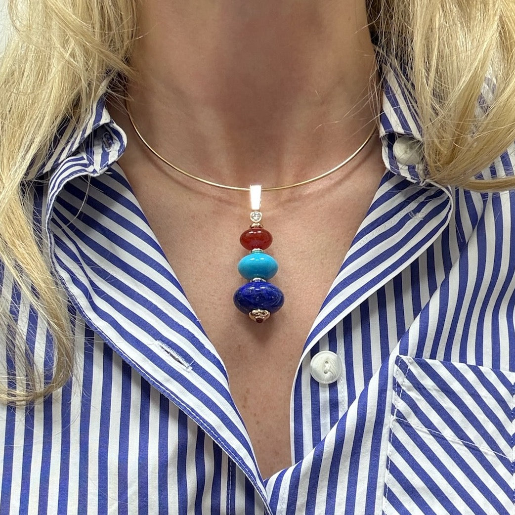 Root Pendant with Carnelian, Turquoise, and Lapis