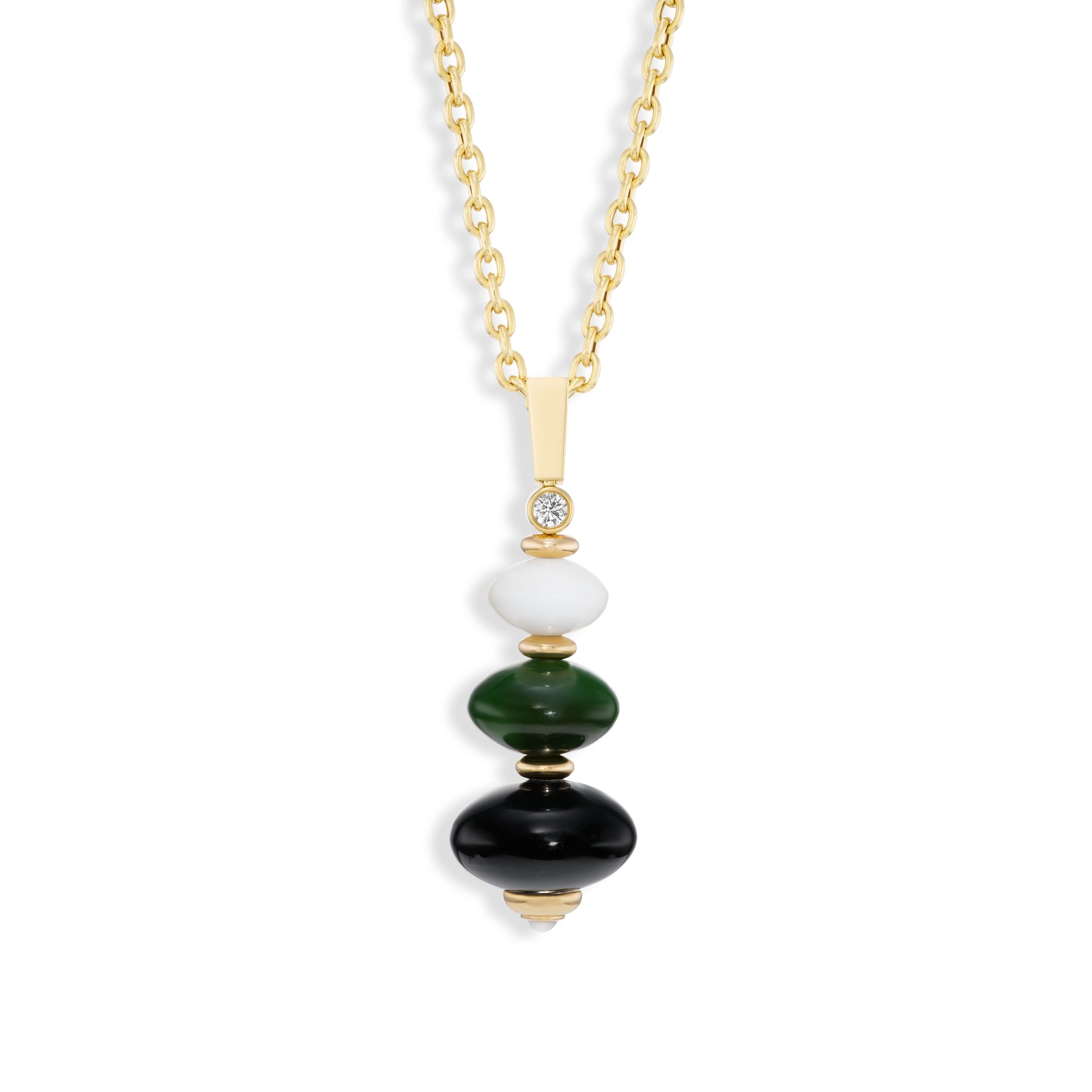 Root Pendant with Mother of Pearl, Nephrite, and Onyx